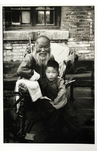 布莱恩 布瑞克,中国,北京,骄傲的祖父与孙子在他们的房子前面,1957年,银盐摄影打印,来自布莱恩.布瑞克的遗产。